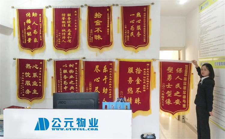 如今,公元物业安顺新天地管理处已挂满了锦旗。
