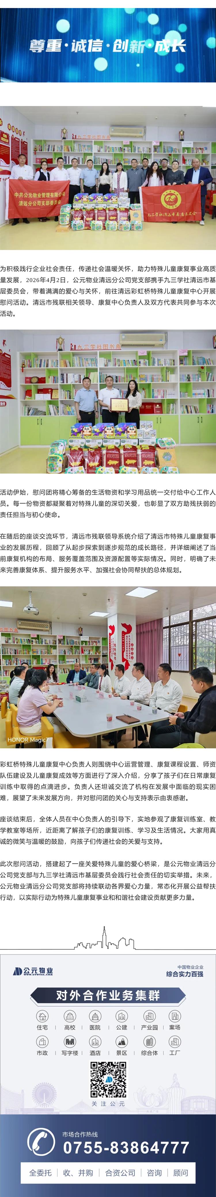 爱心汇聚彩虹桥,真情守护特殊儿童——公元物业清远分公司党支部联合九三学社清远市基层委员会开展特殊儿童慰问活动